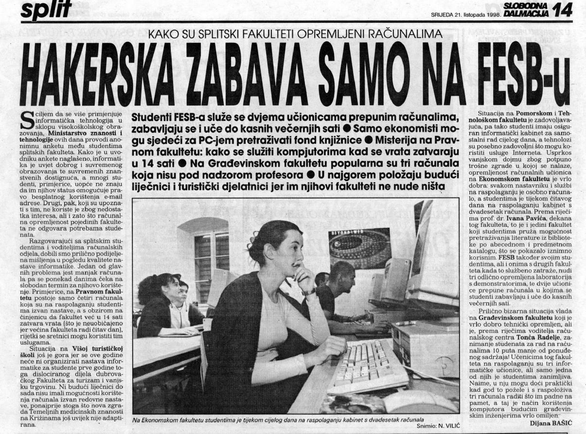 - O hackerima na VDU, Dubrovacki list, 3.12.1999
